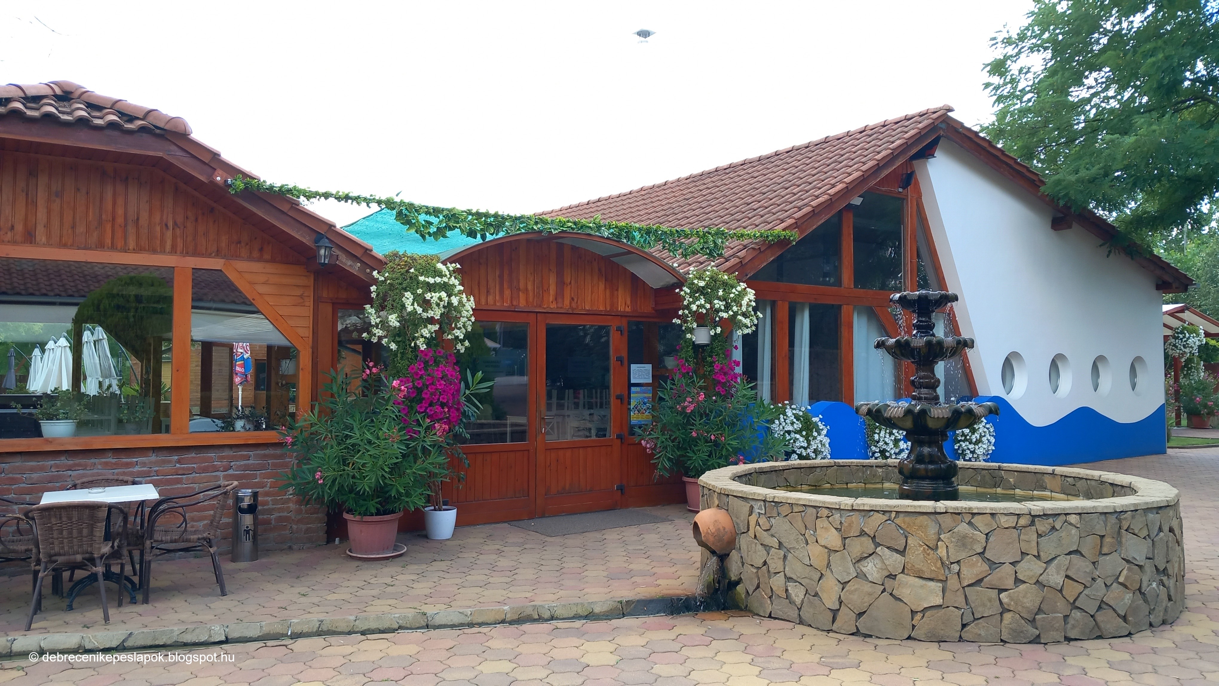 | A rendezvénytermek és a szökőkutas medence ilyen mediterrán hangulatot sugároznak. Fotó: © Debreceni Képeslapok |